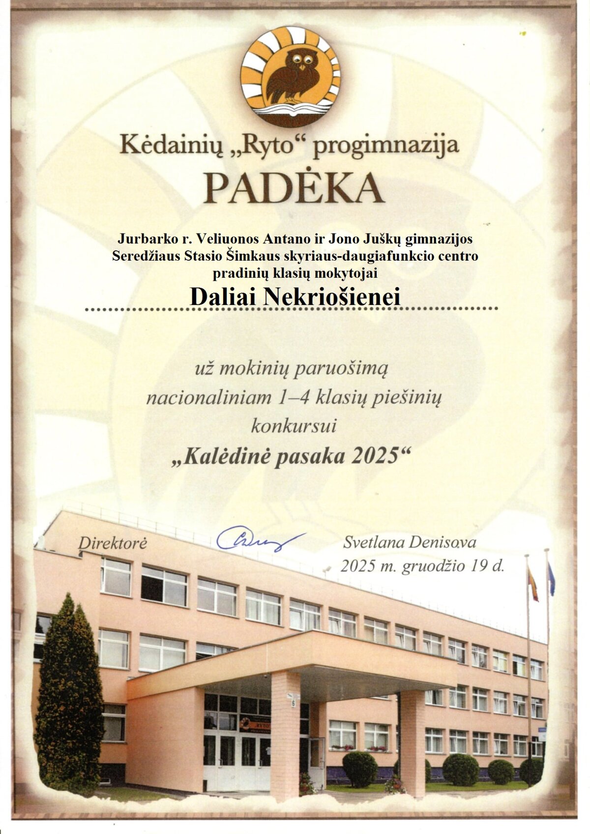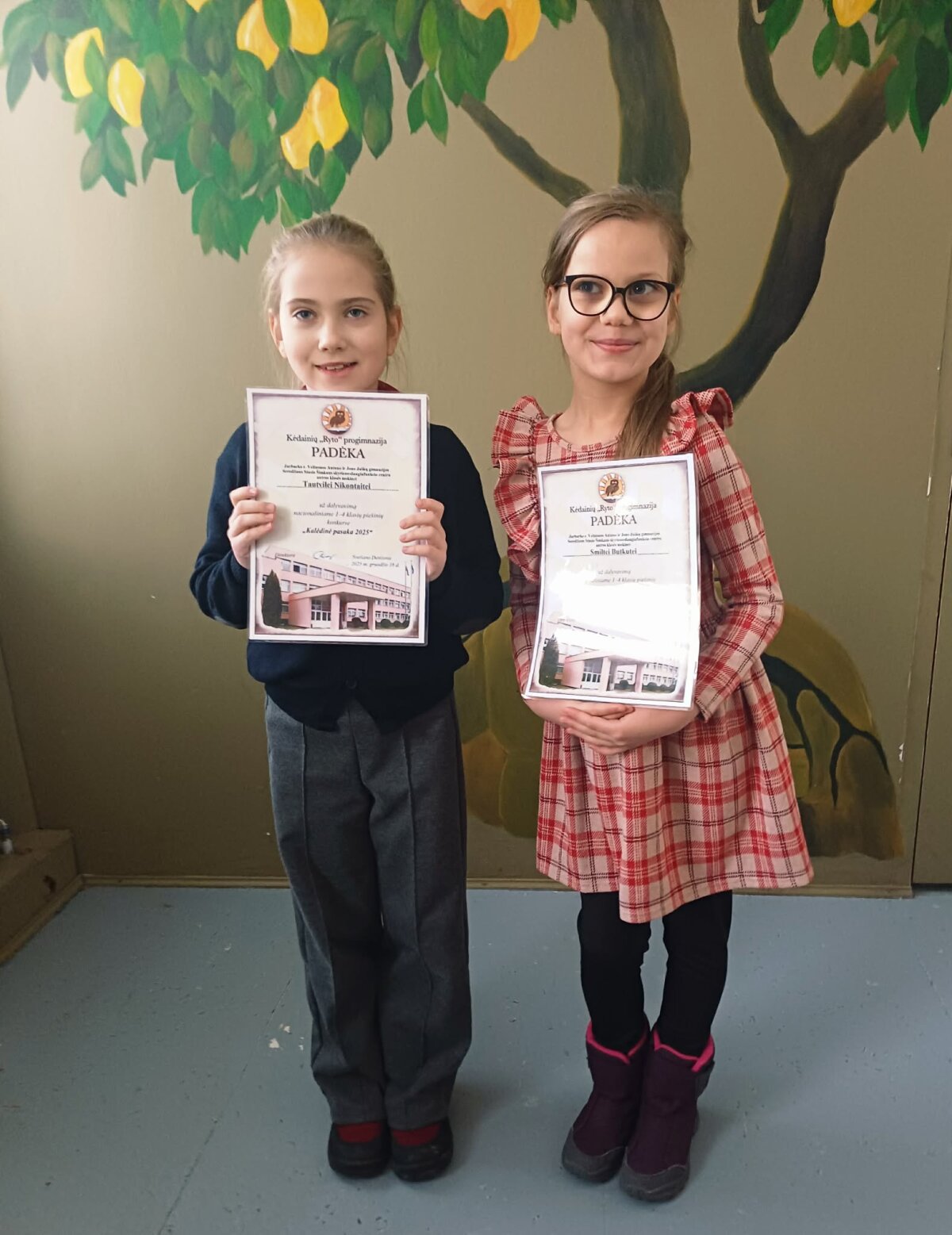 Dvi Veliuonos Antano ir Jono Juškų gimnazijos Seredžiaus Stasio Šimkaus skyriaus-daugiafunkcio centro antros klasės mokinės – Smiltė Butkutė ir Tautvilė Nikontaitė sėkmingai dalyvavo nacionaliniame piešinių konkurse ,,Kalėdinė pasaka 2025“. Abiejų piešiniai originalūs, labai gražūs, tvarkingai atlikti, todėl vertinimo komisijos neliko nepastebėti – mokinėms skirti vardiniai padėkos raštai. Už mokinių paruošimą konkursui padėkos raštas taip pat skirtas jų mokytojai. Smagu, kad mūsų mažieji noriai, aktyviai dalyvauja įvairiose parodose ir konkursuose.