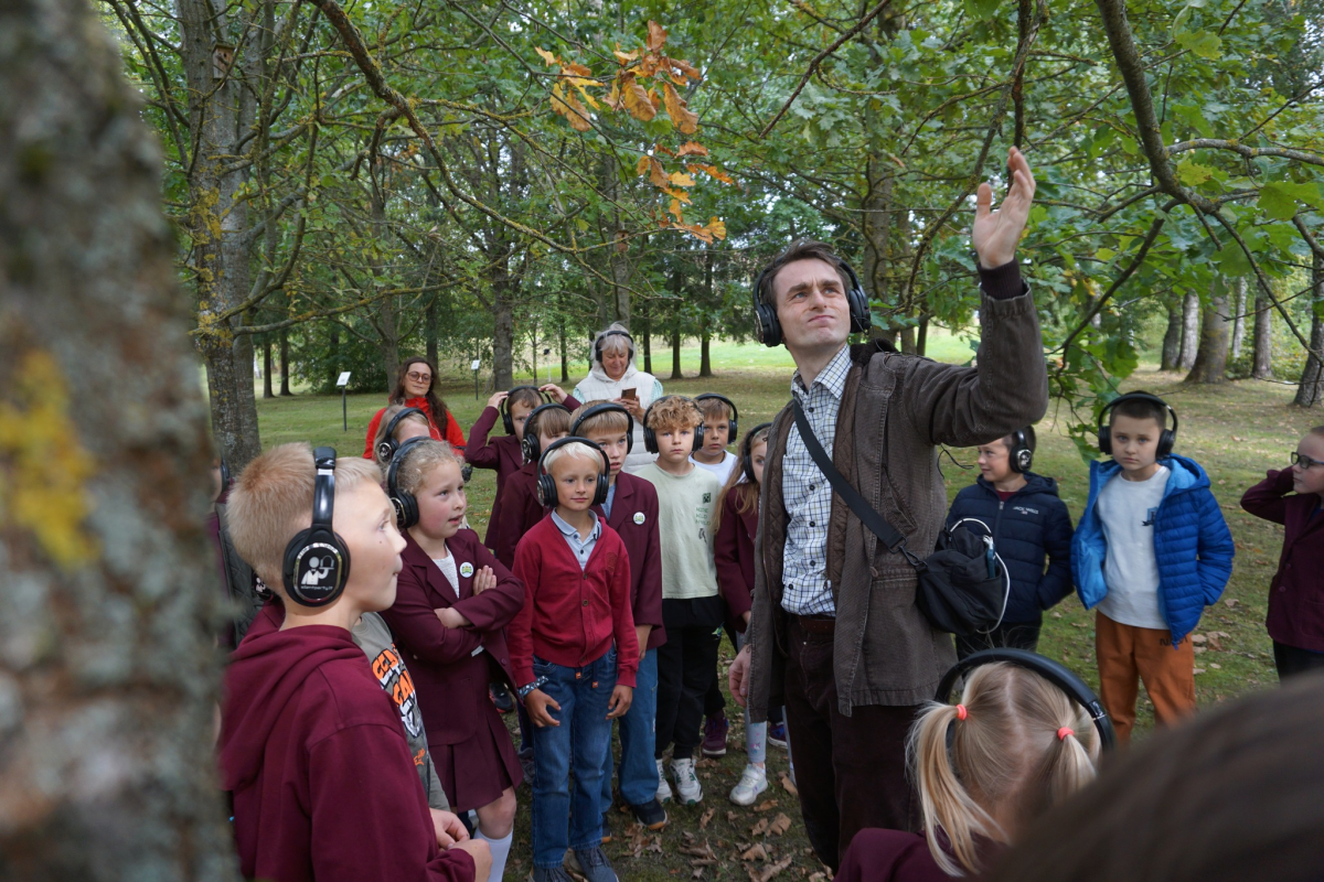 Rugsėjo 22 dieną Veliuonos Antano ir Jono Juškų gimnazijos mažieji gimnazistai turėjo galimybę sudalyvauti interaktyviajame spektaklyje-žygyje ,,BRŪZGYNŲ EILĖS“. Spektaklio metu mus, t. y. žiūrovus, pasitiko ir lydėjo gamtos pasaulio entuziastas ir šiek tiek poetas Vaidotas (akt. Artūras Dubaka). Išdalino miško radio imtuvus ir drauge su mumis keliavo: apjungė spektaklio elementus, kurdamas žiūrovams vientisą poetinės kelionės patirtį, papildytą žaidybiniais elementais, interaktyviomis, į veiksmą įtraukiančiomis veiklomis, žiniomis apie slaptą medžių gyvenimą, jų rūpinimos vieni kitais būdus, medžių kalbą ir net miško internetą. Patyrėme darnų Lietuvos gamtos ir poezijos duetą. Lakstėme parkelyje aplink pradinukų mokyklą, stabtelėjome gražiausiose jo vietose. Klausėmės lietuvių poetų eilėraščių vaikams – apie šalies gamtos grožį ir išmonės pilnus jos herojus. Užsidėję poeto akinius, patyrėme Lietuvos kraštovaizdžio gražų margumyną ir poeziją slypinčią jame.