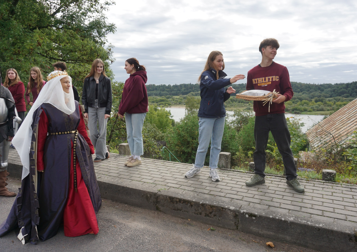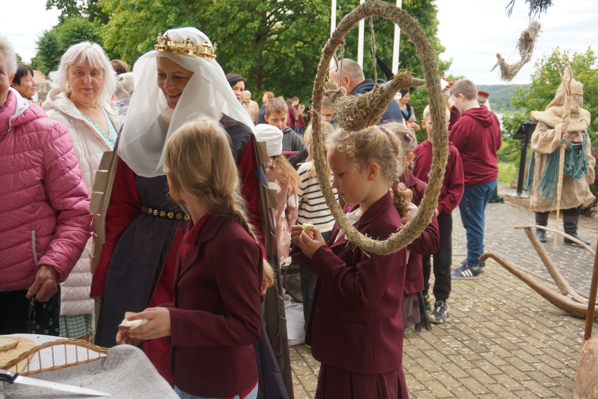 Rugsėjo 22 dieną Veliuonoje paminėjome Baltų vienybės dieną ir Rudens lygiadienį. Miestelio centre tradiciškai vyko akcija „Duonos kelias: nuo Gedimino iki Vytauto Didžiojo“. Šioje gražioje akcijoje dalyvavome Veliuonos gimnazijos bendruomenė ir miestelio gyventojai. Duoną paraikė Veliuonos seniūnas Egidijus Mikšta, sviestą tepė seniūnijos darbuotojos. Veliuonos muziejaus muziejininkas Gediminas Klangauskas supažindino su senoviniais įrenginiais. Veliuonos KC istorinių šokių studija pašoko istorinį šokį. Istorinių ir legendinių personažų vaidmenis įkūnijo IIIG kl. mokiniai ir mokytoja Jolanta Lukenskaitė.