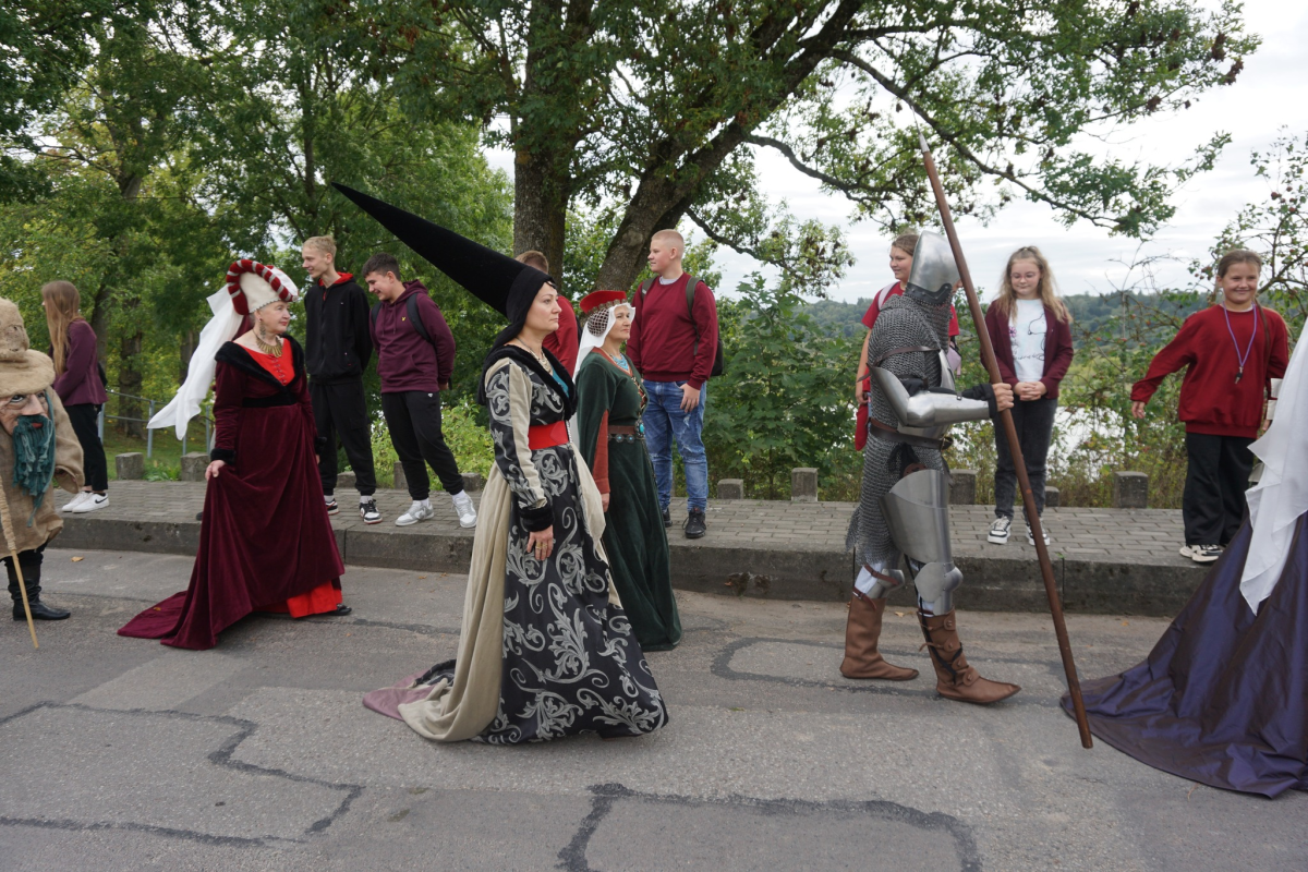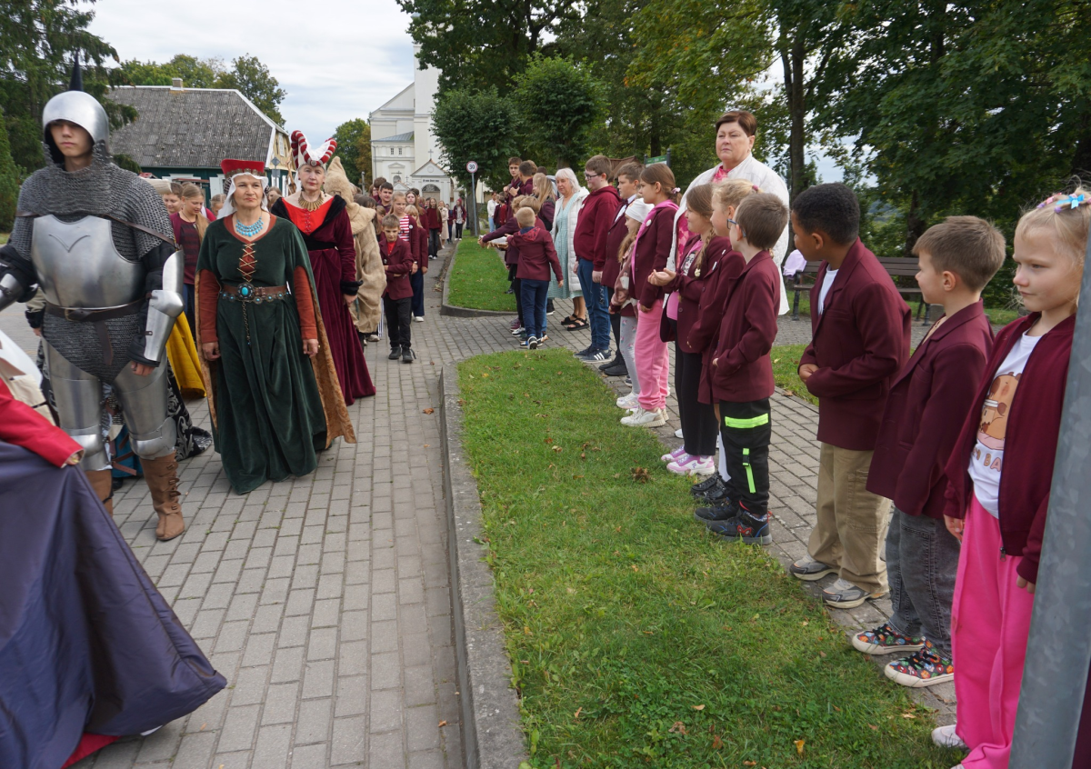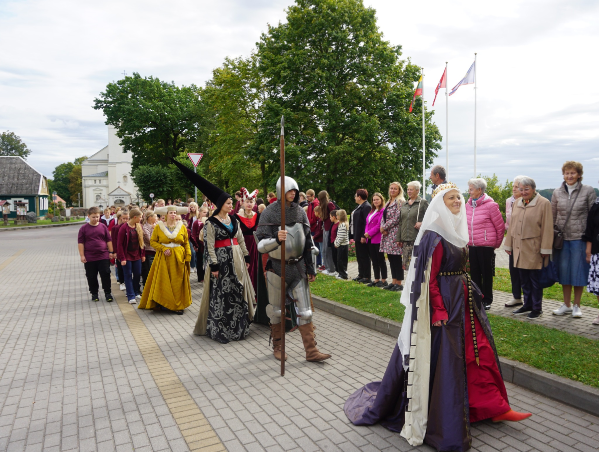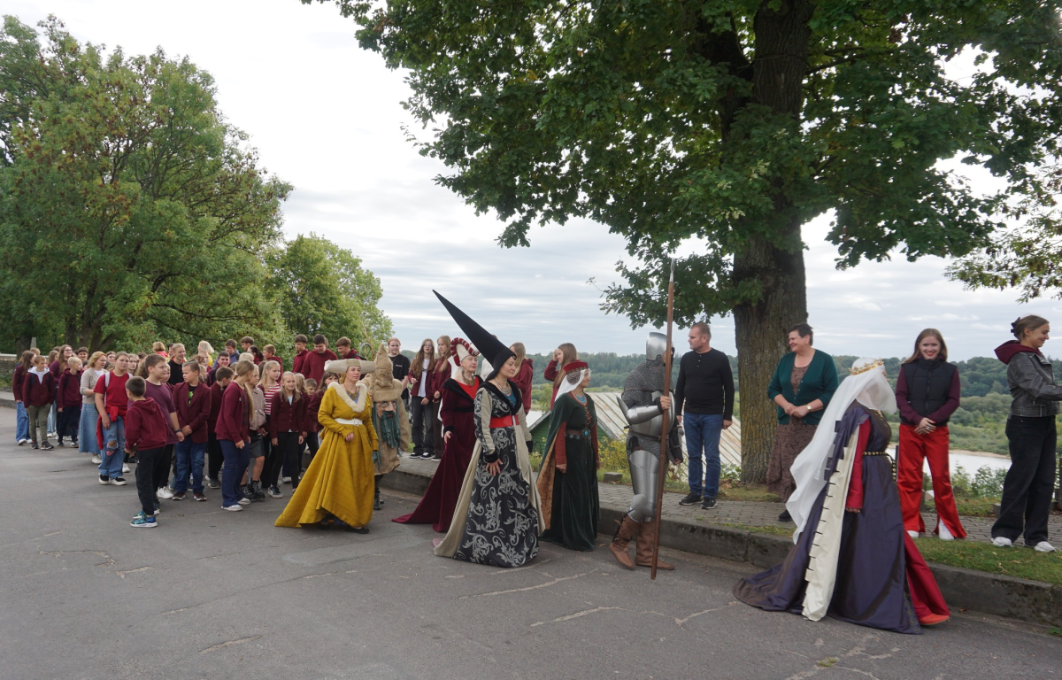 Minint LDK kunigaikščio Vytauto karūnavimo dieną 5 ir 6 klasės mokiniai su lietu...