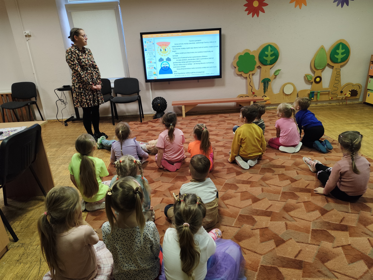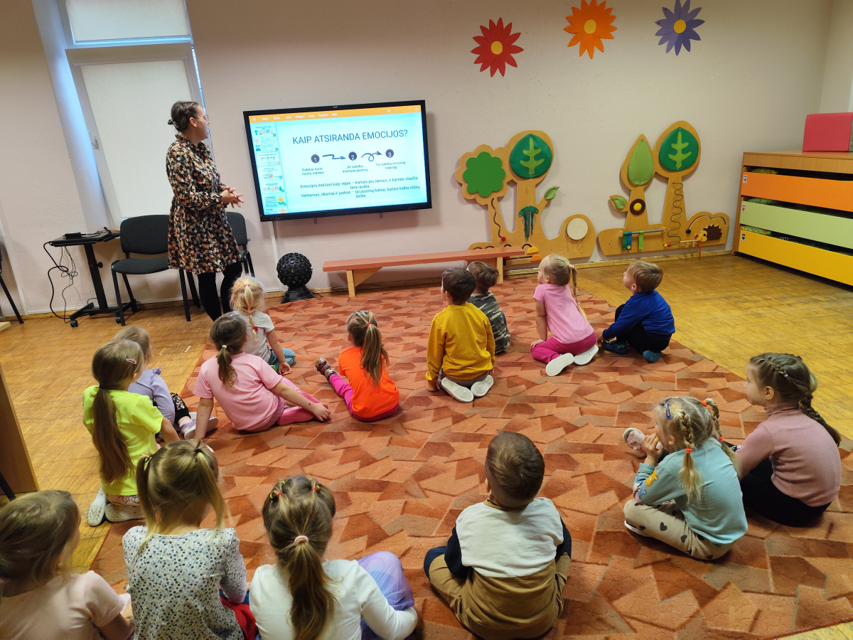 Emocijos yra labai svarbios mūsų gyvenime, todėl svarbu kuo ankščiau kalbėtis su vaikais apie kylančias emocijas ir jausmus, padėti juos atpažinti, įvardinti ir išreikšti. Visuomenės sveikatos specialistė Zita Makūnienė sekdama pasaką „Faretros paslaptis“ „Pelėdžiukų“ grupės ugdytinius supažindino su emocijomis. Vaikai išsiaiškino, kaip atsiranda emocijos. Jie sužinojo, kad emocijos keičiasi kaip vėjas – kartais jos ramios, o kartais siaučia kaip audra. Užsiėmimo metu vaikai pažino emocijų veidukus, įvardijo, kokios tai emocijos ir spalvindami pavaizdavo pagrindines emocijas: džiaugsmą, baimę, liūdesį ir pyktį.