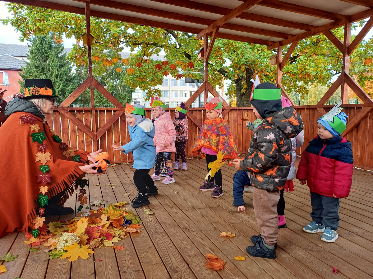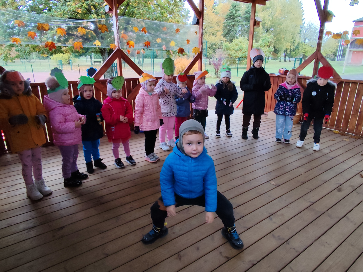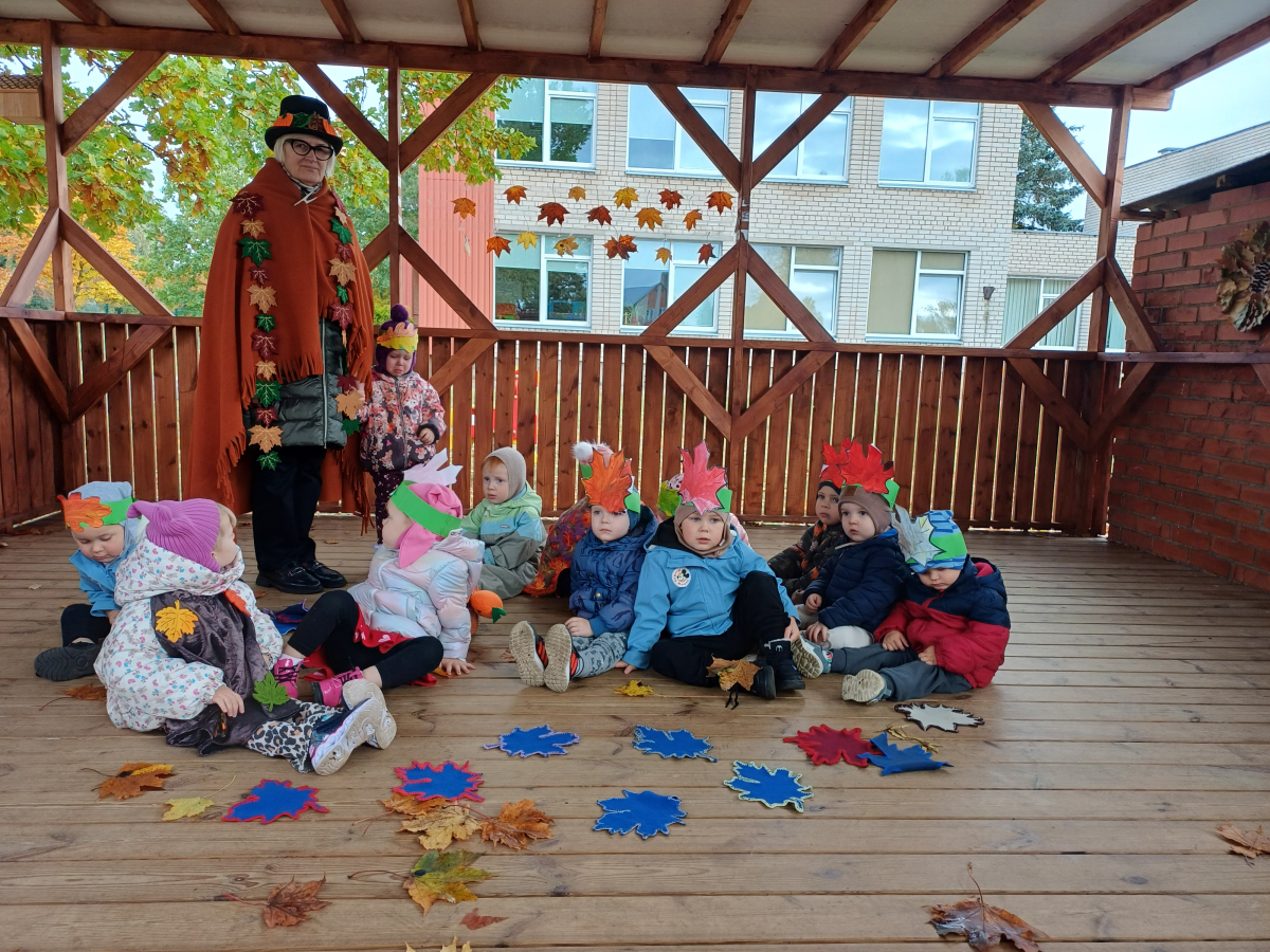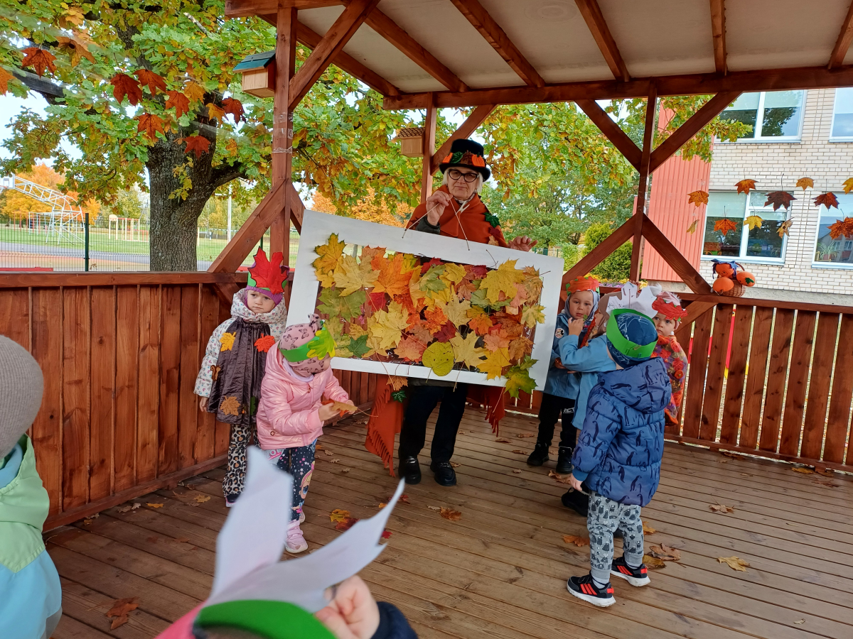 Į „Kiškučių“ ir „Pelėdžiukų“ grupes atskubėjo Rudenėlis. Kartu su Rudenėliu vaikai šoko, dainavo, minė mįsles, rinko grybus. Buvo smagu visiems drauge kurti rudeniškus darbelius – lapų ir rudens gėrybių koliažus. Linksmi ir įspūdžių kupini vaikai grįžo į grupes, kur dalinosi šventės įspūdžiais.
