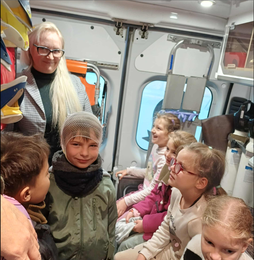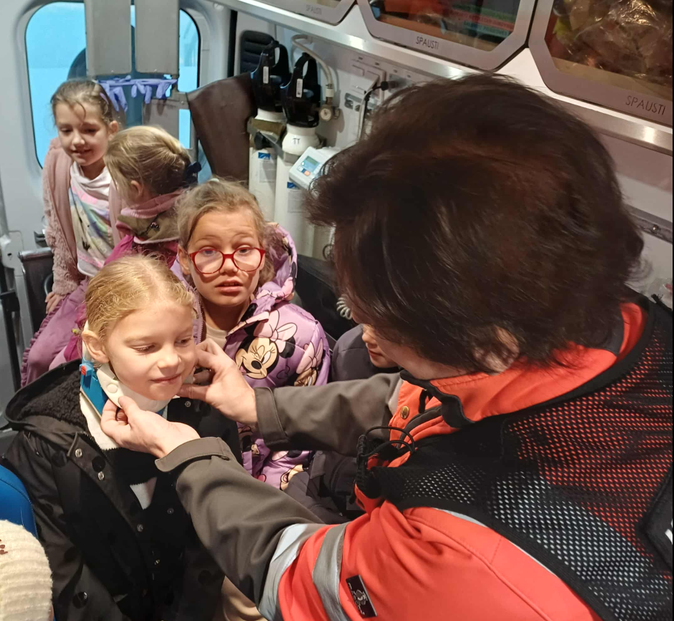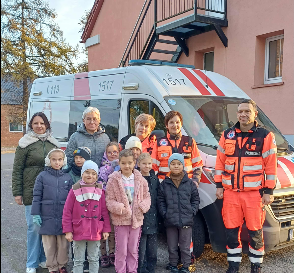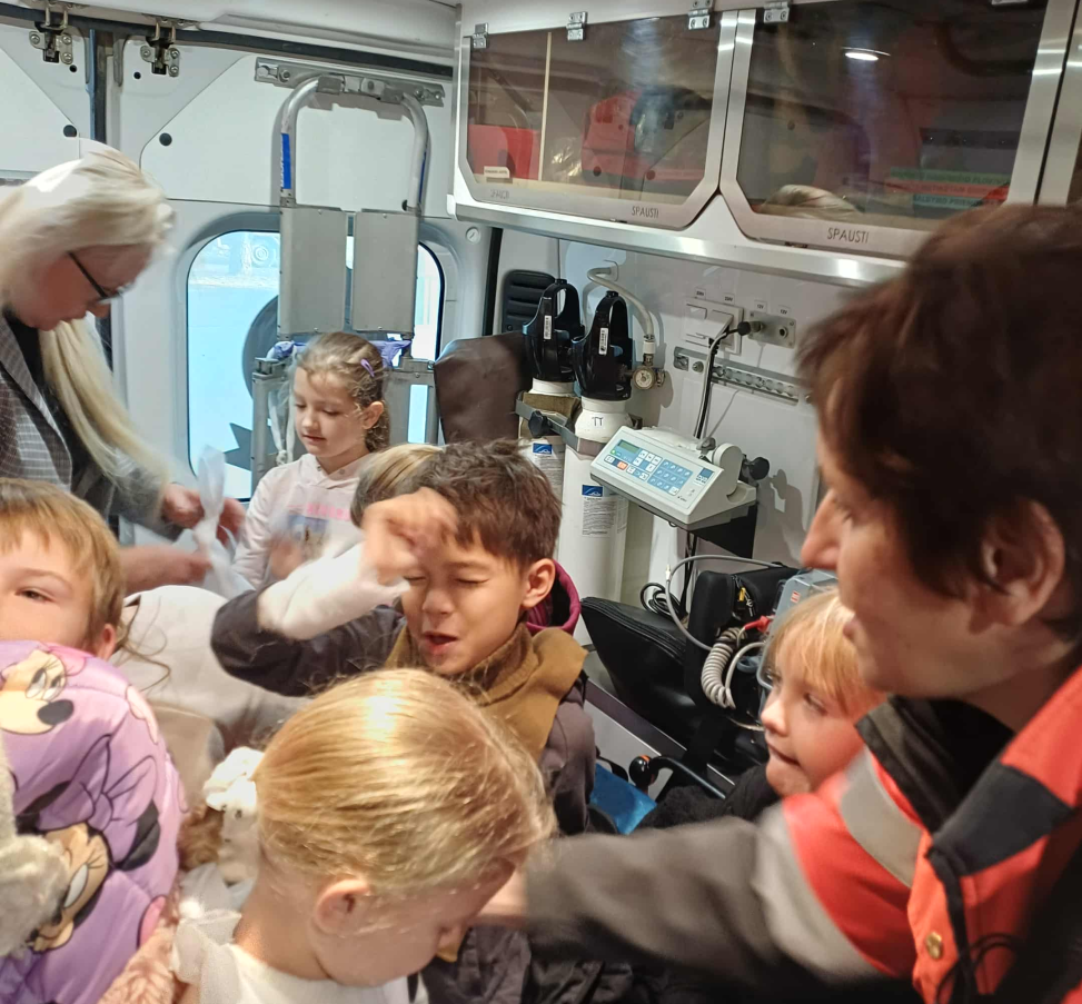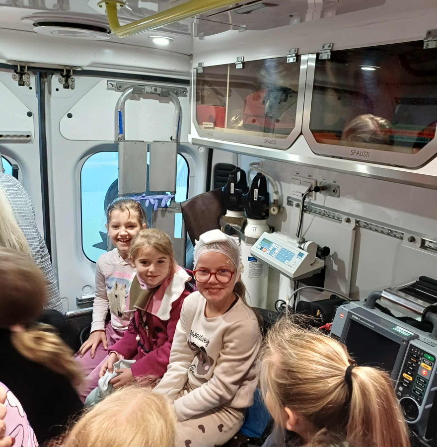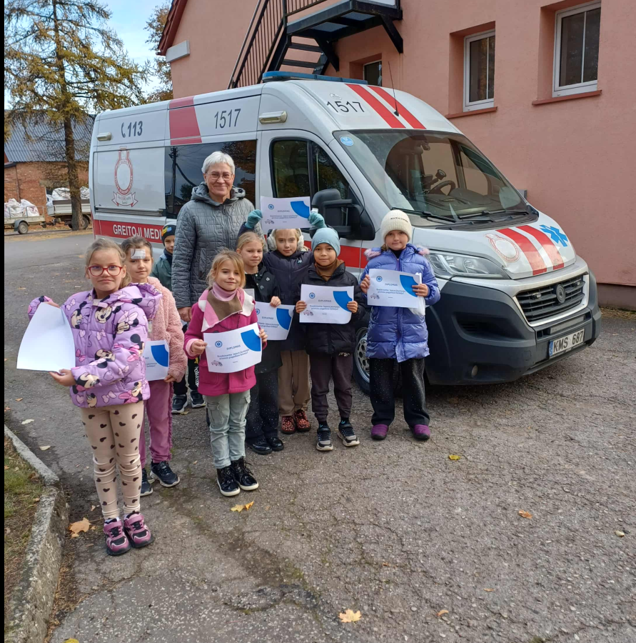 Veliuonos Antano ir Jono Juškų gimnazijos Seredžiaus Stasio Šimkaus skyriaus-daugiafunkcio centro 1–2 klasių mokiniai aplankė Greitosios medicinos pagalbos tarnybą (GMPT), budinčią Seredžiuje. Vaikai sužinojo apie greitosios medicinos pagalbos tarnybos paslaugas, medikų darbą ir ką daryti, kai ištinka nelaimė, kai susižeidžia draugas ar sutrinka šalia esančio sveikata. Edukacijos pradžioje mokiniai jautėsi kažkiek nedrąsiai, tačiau vėliau matėme švytinčias vaikų akis, norą viską išbandyti ir kuo daugiau patirti. O įspūdžių tikrai netrūko. Vaikai mokėsi, kaip gelbėti draugą, klausė kaip plaka širdis, galėjo stebėti širdies darbą, kurį fiksuoja GMPT medikų aparatūra, turėjo galimybę sutvarstyti „sužeistą“ ranką, galvą, uždėti kaklo įtvarą, atlikti gaivinimo veiksmus. Visi sužinojo ir išmoko, kad ištikus nelaimei, reikia skambinti numeriu 112 ir žinoti tikslų adresą, kur turi atvykti gelbėtojai. Edukacijos pabaigoje medikai pasveikino mokinius tapus jaunaisiais pirmosios pagalbos teikėjais ir visiems įteikė tai patvirtinančius diplomus. Nuoširdžiai dėkojame medikams už įdomią ir labai naudingą edukaciją.