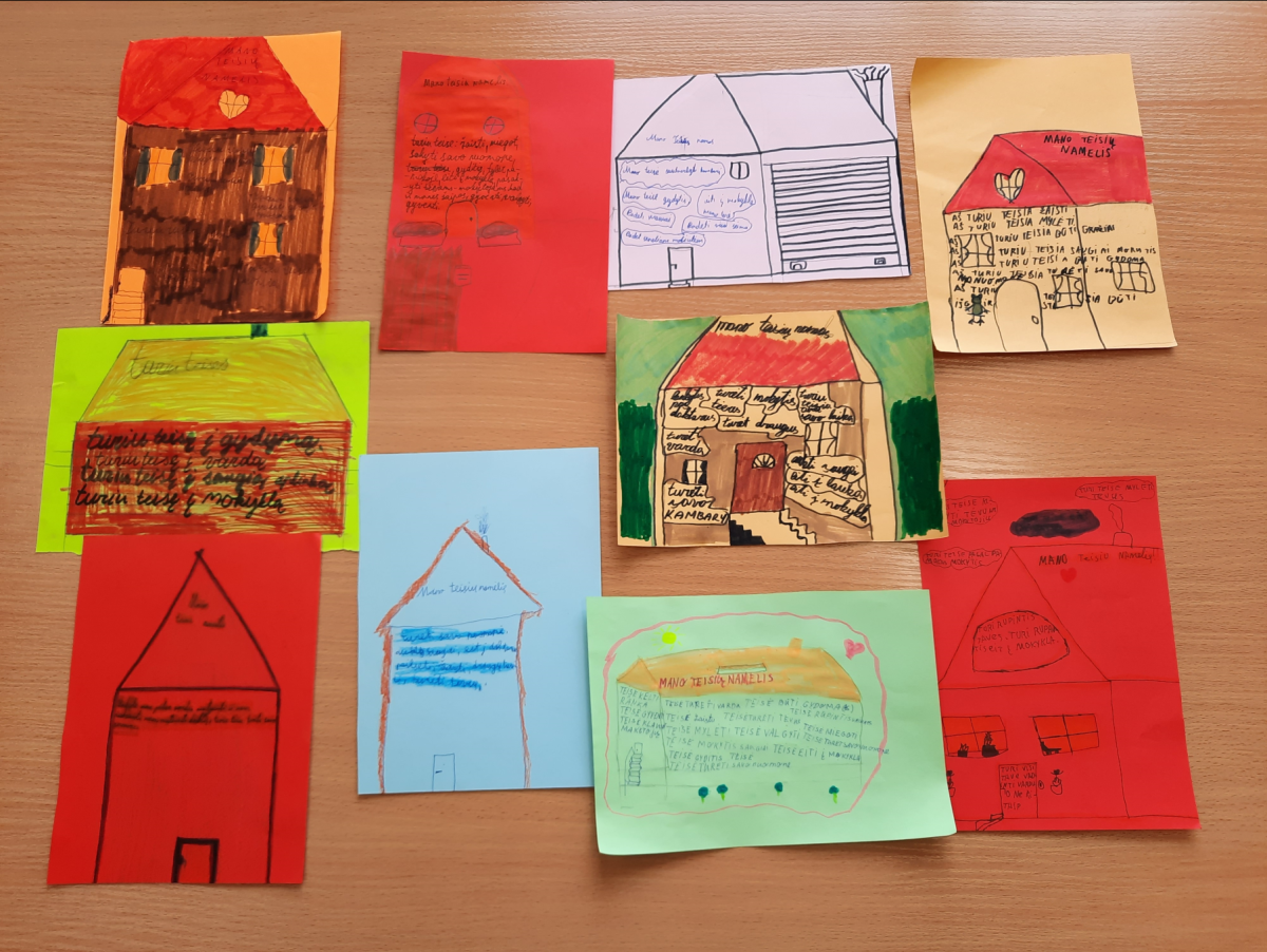 Didžiausias dėmesys skirtas praktinei veiklai. Mokiniai kūrė „Teisių namelį“ – spalvingą ir kūrybišką darbą, simbolizuojantį svarbiausias vaiko teises. Ši veikla skatino vaikus atpažinti situacijas, kuriose teisės gali būti pažeidžiamos, kalbėtis apie empatiją ir atsakomybę už save ir kitus.