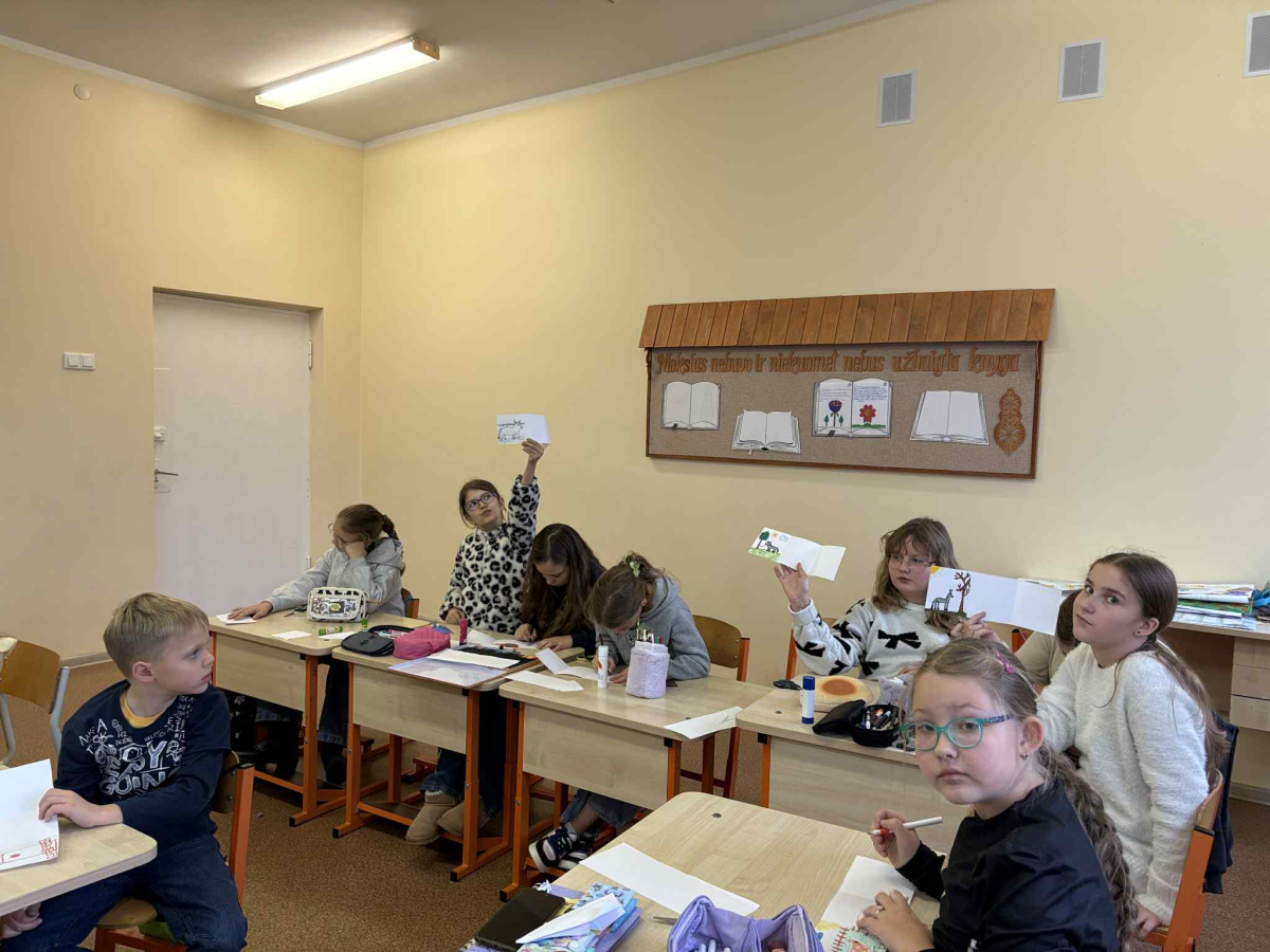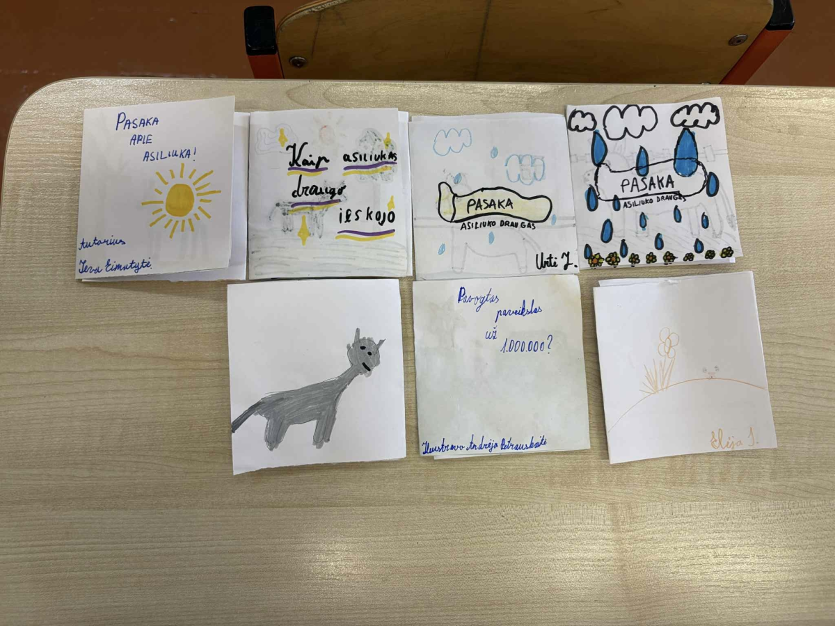 Veliuonos A. ir J. Juškų gimnazijos Klausučių Stasio Santvaroskyriuje vyko Prano Domšaičio galerijos edukacinis užsiėmimas,skirtas 1–4 klasių mokiniams „Kaip asiliukas draugą surado“ iš ciklo„Pasakos muziejuje. Kas muziejuje gyvena?“. Užsiėmimo metu vaikaiklausėsi pasakos, ją aptarė, o vėliau buvo pakviesti patys taptipasakų dailininkais ir pasakotojais. Mokiniai popieriaus lapą sulankstė taip, kad susidarytų trys langeliai – tarsi nedidelė pasakų juostelė. Juk kiekviena istorija turi pradžią, vidurį ir pabaigą. Mokiniai kūrybingai iliustravo pasakojimą, kūrė savo siužetus, o norintys galėjo ne tik parodyti, bet ir pasekti savo sukurtas pasakas. Užsiėmimas buvo kupinas fantazijos, kūrybos ir džiugių emocijų.