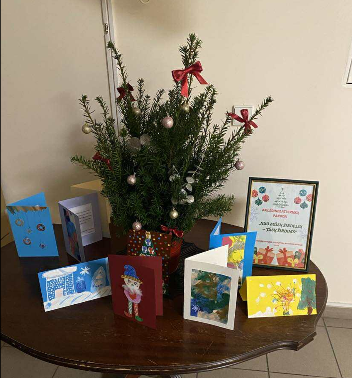 3 klasės mokinių Viltės Šmatauskaitės ir Deimantės Lekečinskaitės kalėdiniai atvirukai eksponuojami Jurbarko ligoninės slaugos skyriuje meninių darbų parodoje „Nuo mūsų širdelių – Jūsų širdims“.