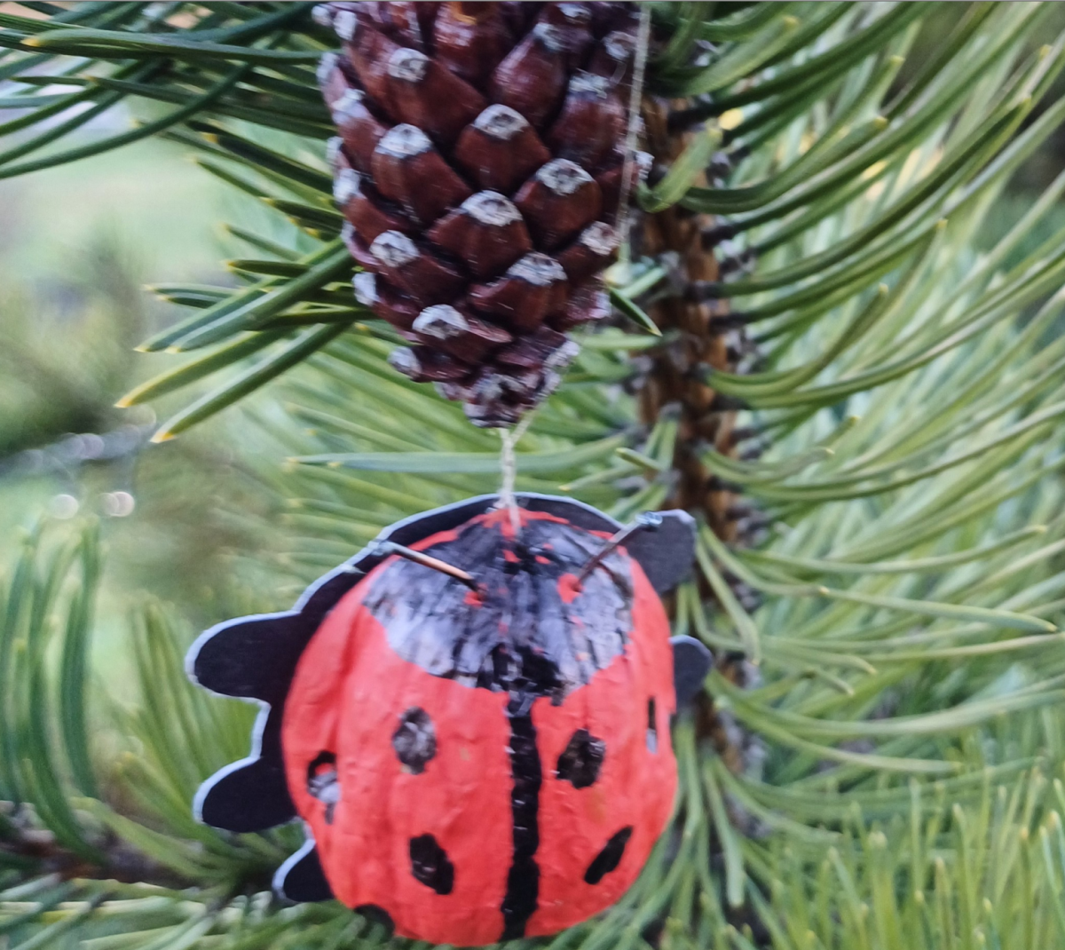 Vaidas Simanavičius ir Matas Simanavičius, 2 ir 3 klasių mokiniai, gamino žaisliukus iš graikinių riešutų kevalų ir dalyvauja respublikinėje virtualių kūrybinių darbų parodoje „Išlukštenk Kalėdas su STEAM“