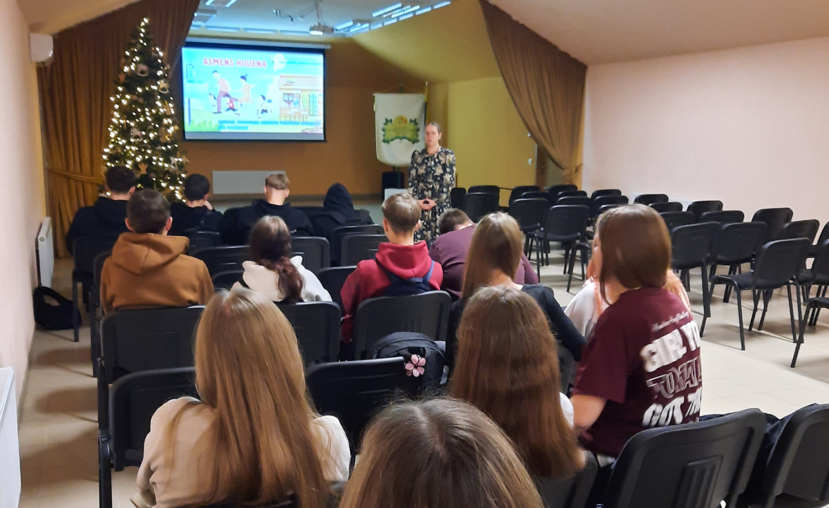 Gruodžio 15 d. Veliuonos A. ir J. Juškų gimnazijoje 5 kl. ir IG kl. mokiniams vyko sveikatos valandėlės „Merginų ir vaikinų kūno pokyčiai ir asmens higiena“, kurias vedė visuomenės sveikatos specialistė Zita Makūnienė. Užsiėmimų metu mokiniai buvo supažindinti su paauglystės laikotarpiu vykstančiais fiziniais ir emociniais kūno pokyčiais, aptarta asmens higienos svarba, atsakyta į mokiniams rūpimus klausimus.