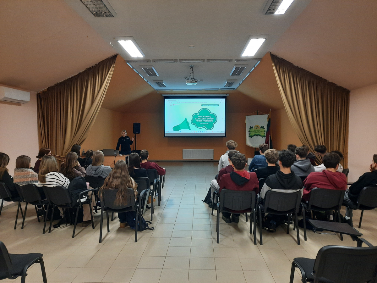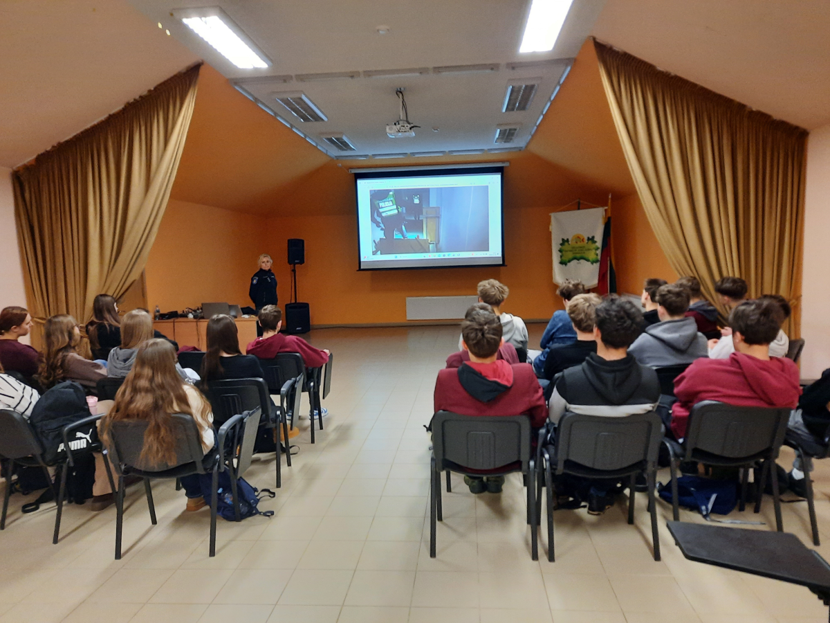 Paskaitos metu pareigūnė išsamiai aptarė teisės aktus, reglamentuojančius nepilnamečių atsakomybę Lietuvoje, ir supažindino mokinius su elgesio formomis, laikomomis teisės pažeidimais ar nusikaltimais – nuo rūkymo bei alkoholio vartojimo iki chuliganizmo, turto gadinimo ar psichiką veikiančių medžiagų laikymo ir vartojimo. Mokiniai buvo informuoti apie nepilnamečių netinkamo elgesio teisinius aspektus ir galimas pasekmes.