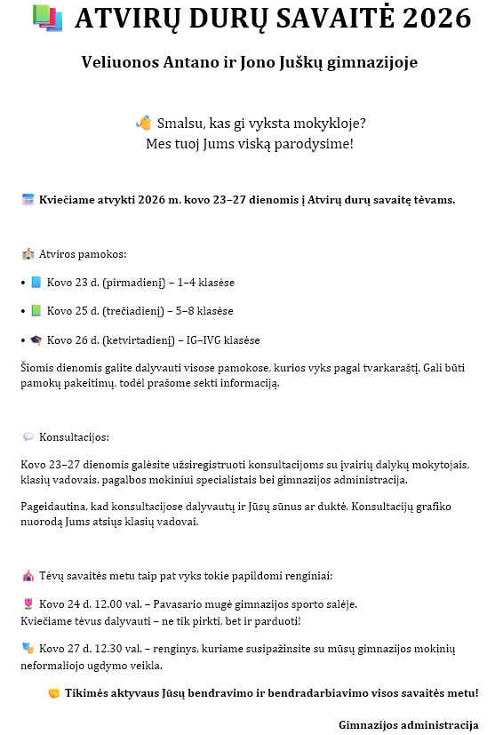 ATVIRŲ DURŲ SAVAITĖ 2026