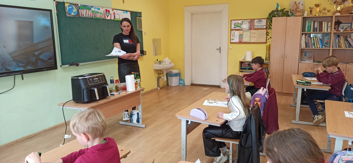 Greitai prabėgo Atvirų durų savaitė Tėvams. Gimnazijos 2 klasės mokiniai labai džiaugėsi Tėvelių pamokėlėmis. Urtės mamytė Zita pirmokams ir antrokams vedė gamtos pamoką „Vandens lašelio kelionė“. Vaikai ne tik susipažino su vandens lašelio nuotykiais keliaujant Vandens apytakos ratu, bet ir patys pasigamino vandens lašelį, kuris primins koks yra svarbus vanduo Žemei, žmogui, gyvūnams ir augalams. Pirmoko Orijaus ir ketvirtoko Jokūbo mama Jurgita aplankė visų pradinių klasių mokinius, papasakojo apie Velykų papročius bei pasiūlė numarginti į kiaušinius panašius moliūgėlius. Buvo labai įdomi patirtis! Neišpasakytai „skanią“ pamoką vedė Jorės mamytė. Pokalbiu apie vaisių ir daržovių naudą prasidėjusi pamoka baigėsi sveikuoliškų burgerių gamyba. Gardūs kvapai kuteno nosį, o gomurį malonino pačių pasigaminti pietūs. Mokiniai buvo aktyvūs ir puikiai atliko užduotis, todėl buvo apdovanoti skaniomis braškėmis!