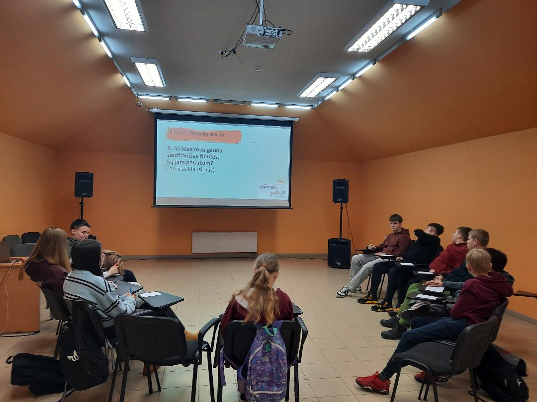 Mokiniai aktyviai įsitraukė į veiklas, diskutavo, dalijosi savo mintimis ir įžvalgomis. Tokios veiklos padeda kurti saugesnę ir draugiškesnę mokyklos bendruomenę, kurioje kiekvienas jaučiasi svarbus ir išgirstas.